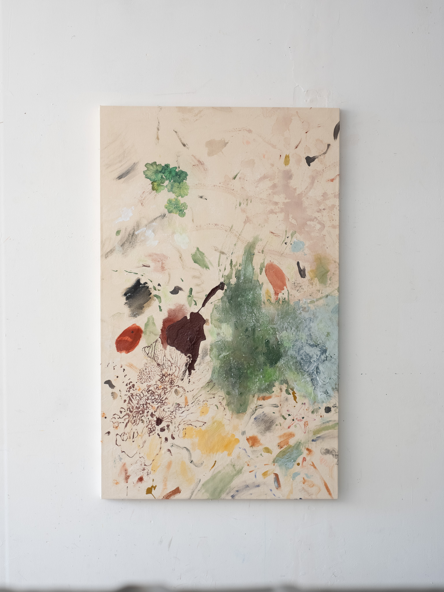 Pigmentos inorgánicos, acrílico y lápices de colores sobre canvas de algodón.