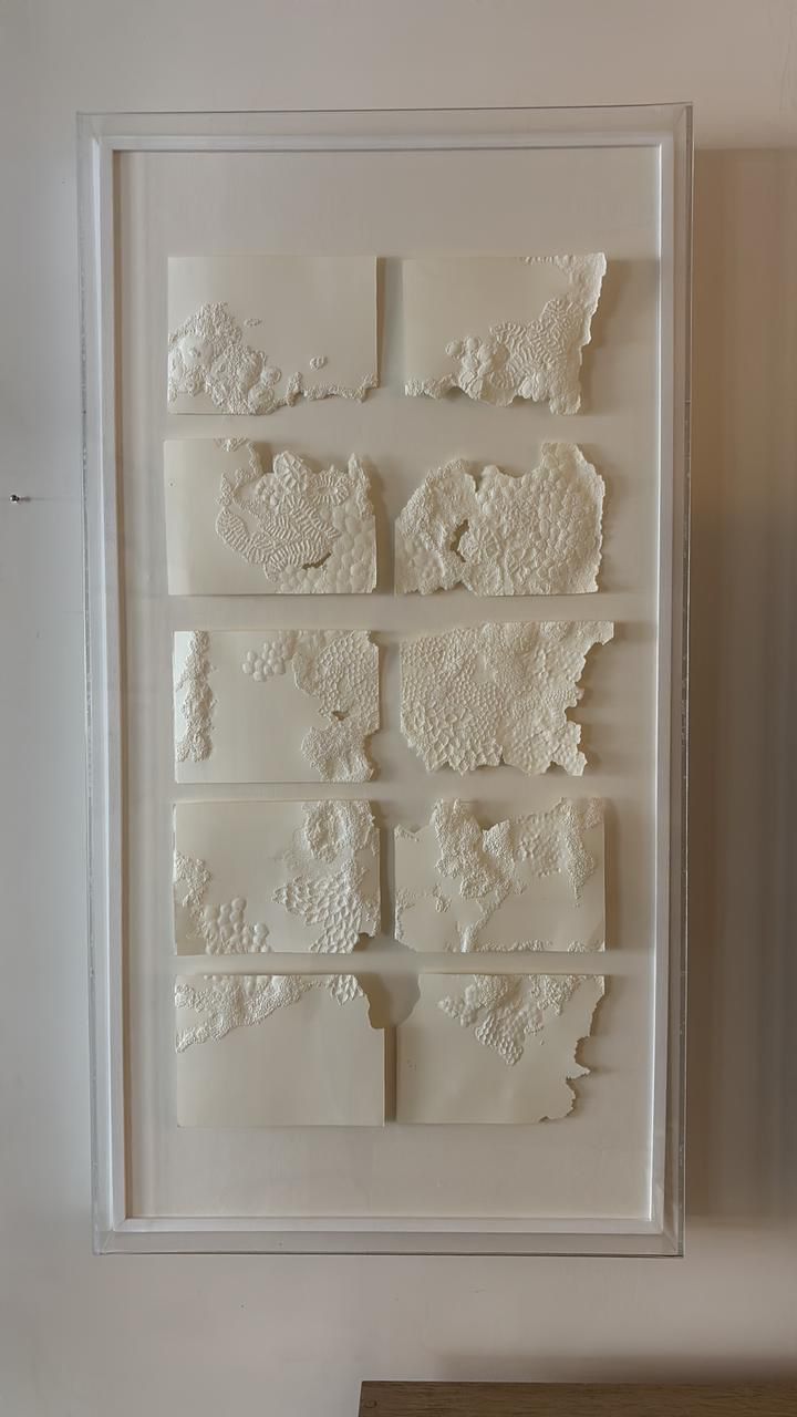 Obra en papel de algodón perforado.